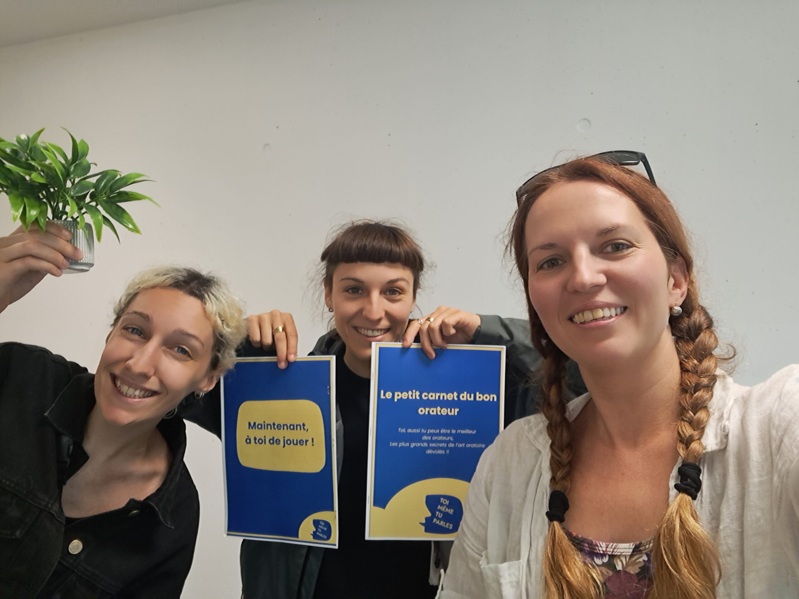 Ce travail personnel est guidé par une partie de l’équipe de Toi-Même tu Parles — Radina, Aliette et Milena — avec une pédagogie fondée sur l’écoute mutuelle, la valorisation des parcours et le droit à l’essai.